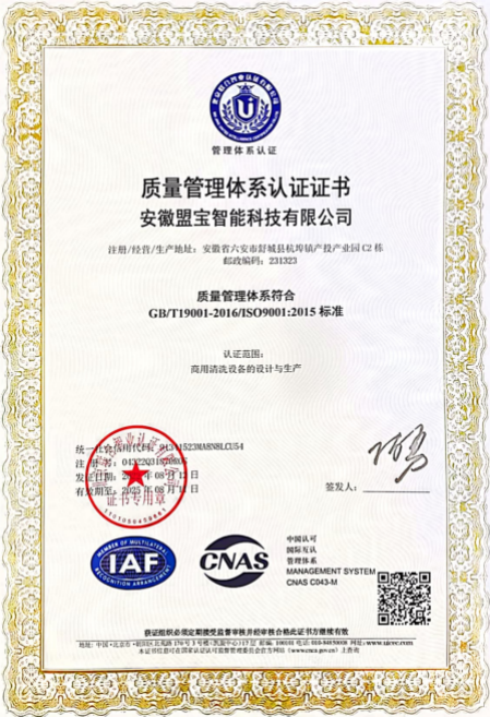 通过了ISO9001质量体系、ISO14001环境体系、ISO45001职业健康体系,三星企业信用等级证书和五星售后服务认证以及AAA信用系列认证,产品整机、材质、食品接触安全产品等认证,具备智能全自动、一键启动、具有自洁功能的控制技术,系列长龙、倒入式超声波洗碗机制造技术,快速中频加热、热水循环技术,电热快速烘干技术,餐具防脱落保护技术,超强超声波自动频率控制技术,燃气加热快速烘干等核心技术。产品结构精巧,操作简便,美观大方,性能稳定,自动化程度高。公司以先进的营销理念与良好的商业信誉为广大客户提供优质高效的售后服务,产品行销全国各地